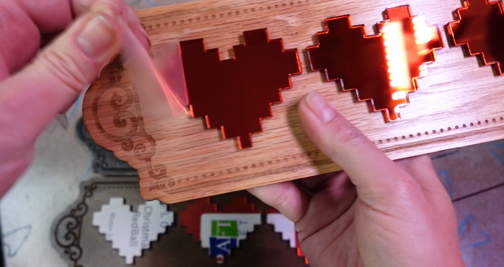For the gamer life bars, I used mirror acrylic for the heart! They have quite a bright pop of color! If you want to know the best glues to use with mirror acrylic, I’ll link my whole video on that up in the corner and in the description box.
