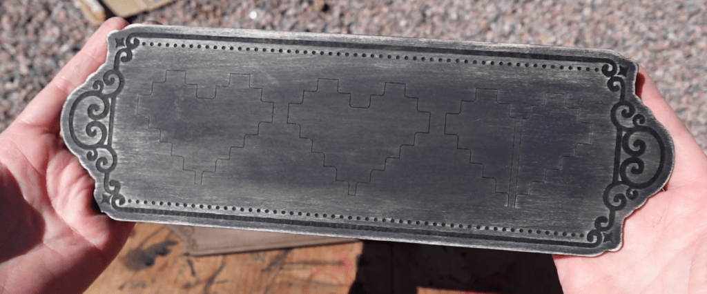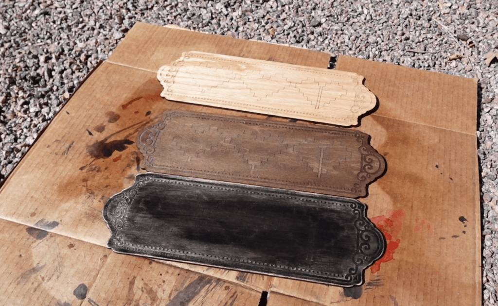 Once it is dry, then we have a lot of options. One thing I like to do is sand the piece again. This helps lighten up the wood around where the engravings took in the stain.