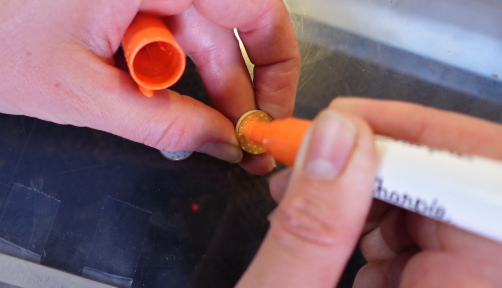 I also cut out a flower from a matte pink acrylic. The middle of the flowers are engraved, and to make those pop out a little, I painted in the engraving with some Paint Pens. Just wait for the big reveal!
