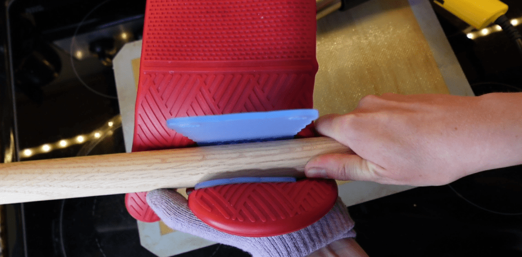 Larger pieces like this can take some time to get hot enough to bend, which also means it takes longer to cool. Once I finally get it to that delicious bologna texture, it’s time to wrap it around this dowel.