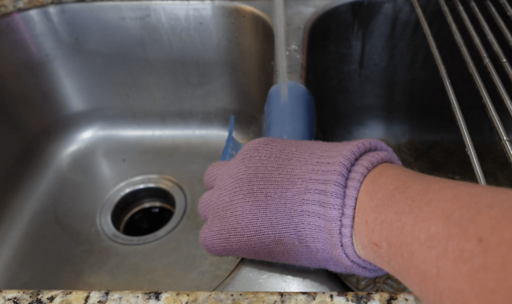 Using an oven mitt, I can spare my hands a bit. The next part we shape, will be molded around this middle bit of my sink.