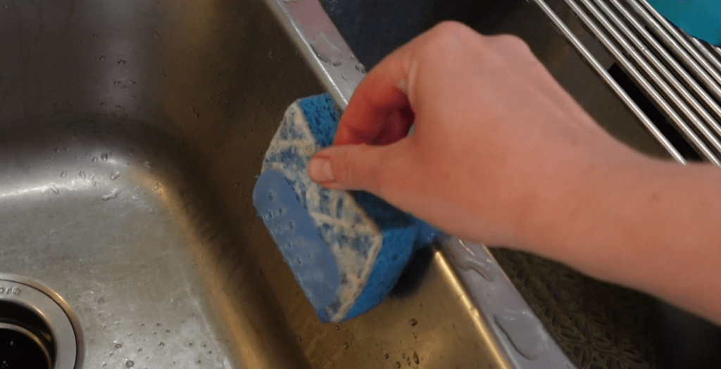 Luckily, being in the sink and all, we can use some cool water to solidify it almost instantly. Do you know what it is yet? Yup, a cute little sponge holder!