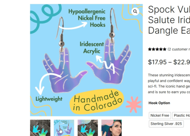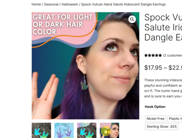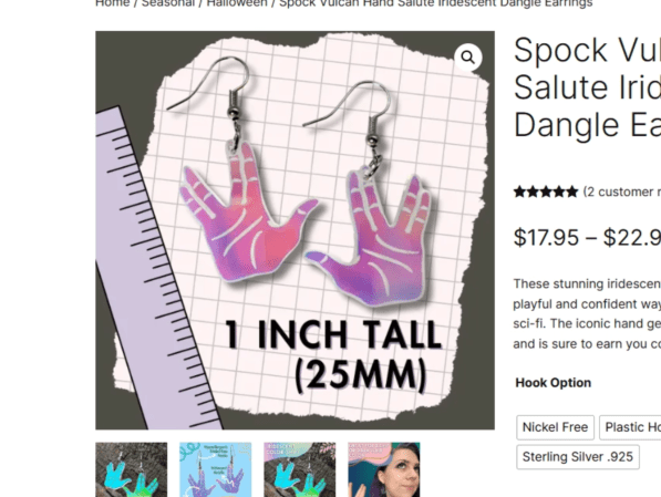 Let’s take these Vulcan Salute earrings for an example. This is one of the listings my resurrection experiment started out with.