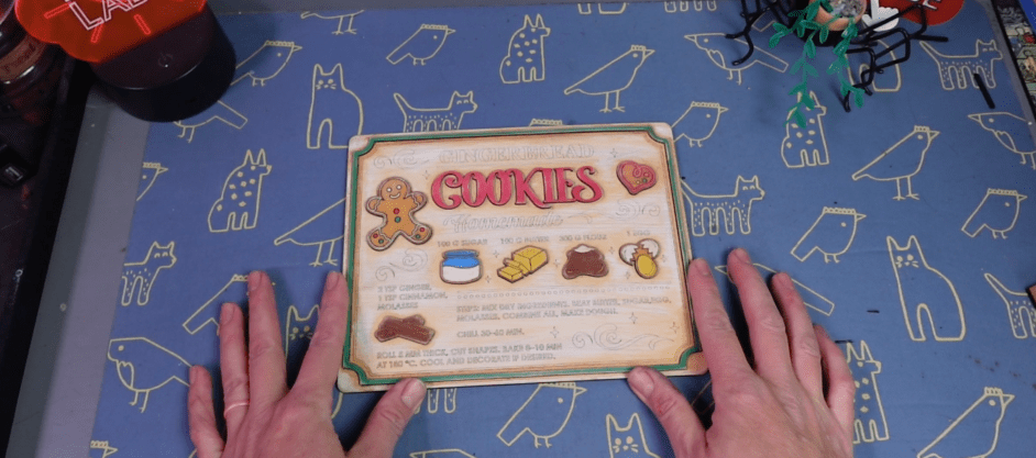 It’s easier than you think to add color after you’ve lasered something out. Take this gingerbread sign as an example. I got this Gingerbread Recipe design off of CreativeFabrica.