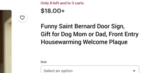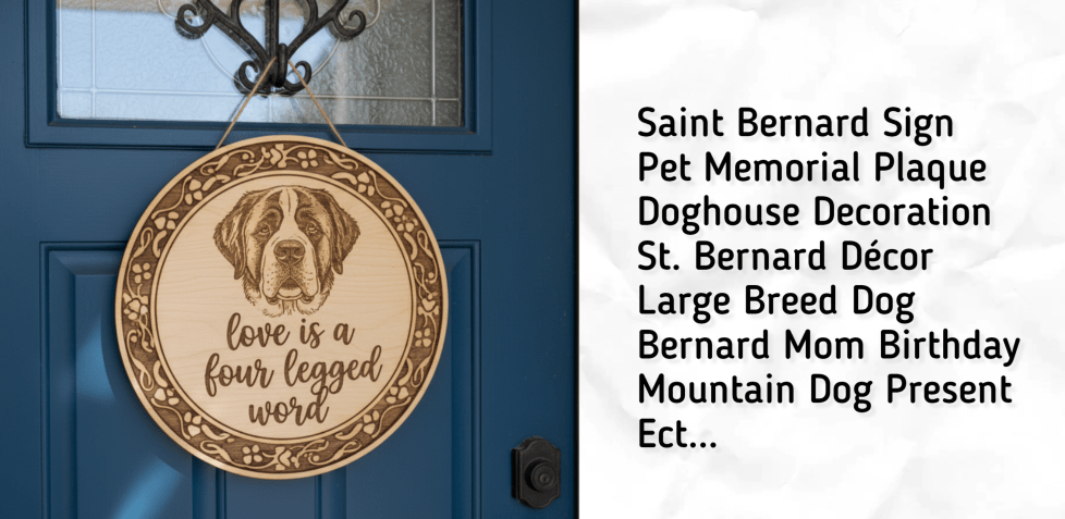 So, try something like this: Funny Saint Bernard Door Sign, Gift for Dog Mom or Dad, Front Entry Housewarming Welcome Plaque