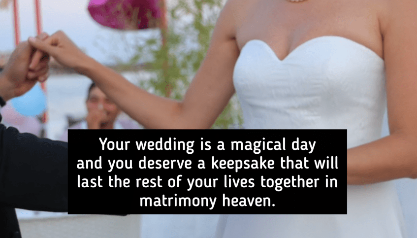 If you engrave Mr and Mrs champagne glasses for instance, say something like, “Your wedding is a magical day, and you deserve a keepsake that will last the rest of your lives together in matrimony heaven.” We’ve got keywords like wedding, keepsake and matrimony. Let it flow.