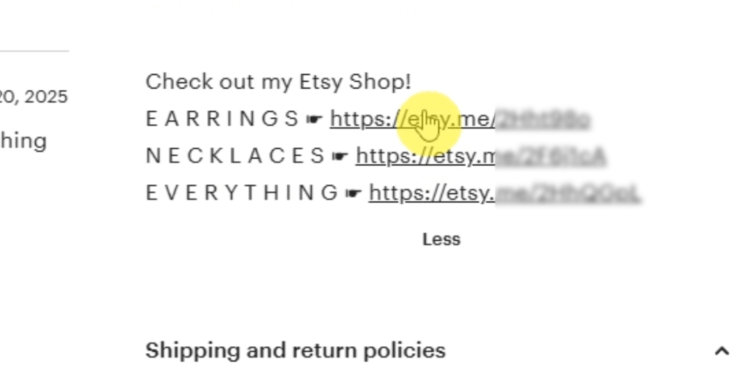 This next tip is so overlooked and most people don’t even know about it. You can include live links to other products in your Etsy shop IN your product description.