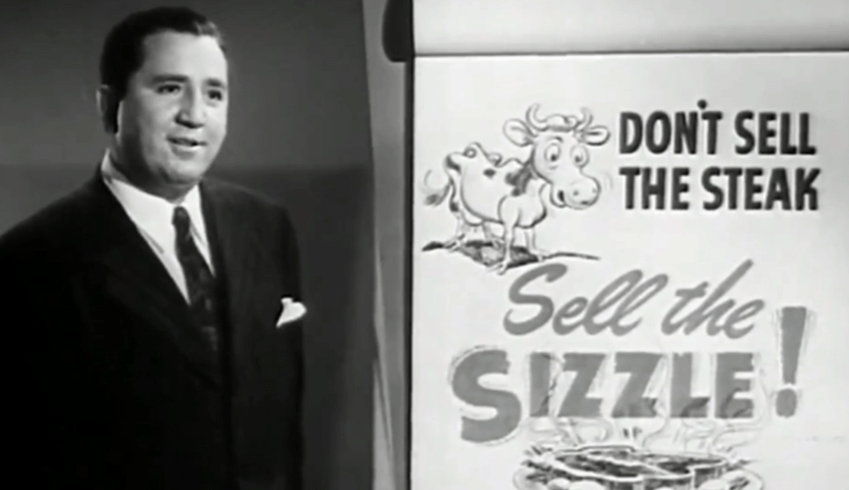 Elmer Wheeler once said, like a hundred years ago, “Don’t sell the steak, sell the sizzle”. That that still stands true today.