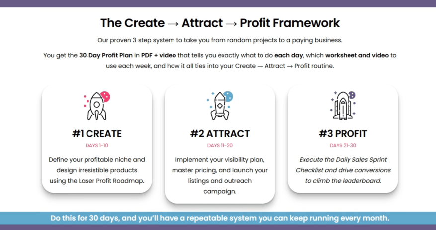 - Follow a simple Create → Attract → Profit plan